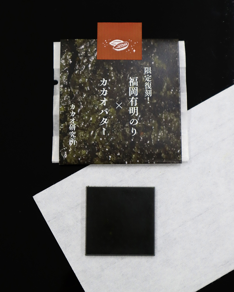 カカオバターに、初摘み特撰の福岡有明のりをたっぷりと使用。長崎・壱岐の粗塩も加えた贅沢な一品です。