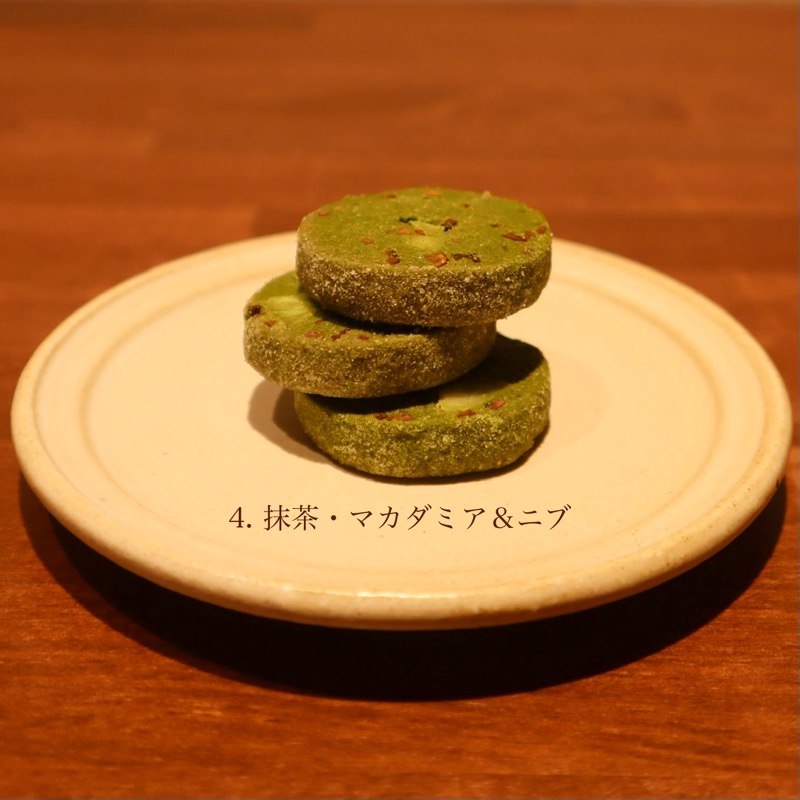 惜しみなくふんだんに使用した八女抹茶とざっくり砕いたマカダミア、そのマリアージュがベトナム産ニブと響き合います。ほのかに苦みを持つ抹茶の余韻が続く、抹茶好きも唸るクッキー。